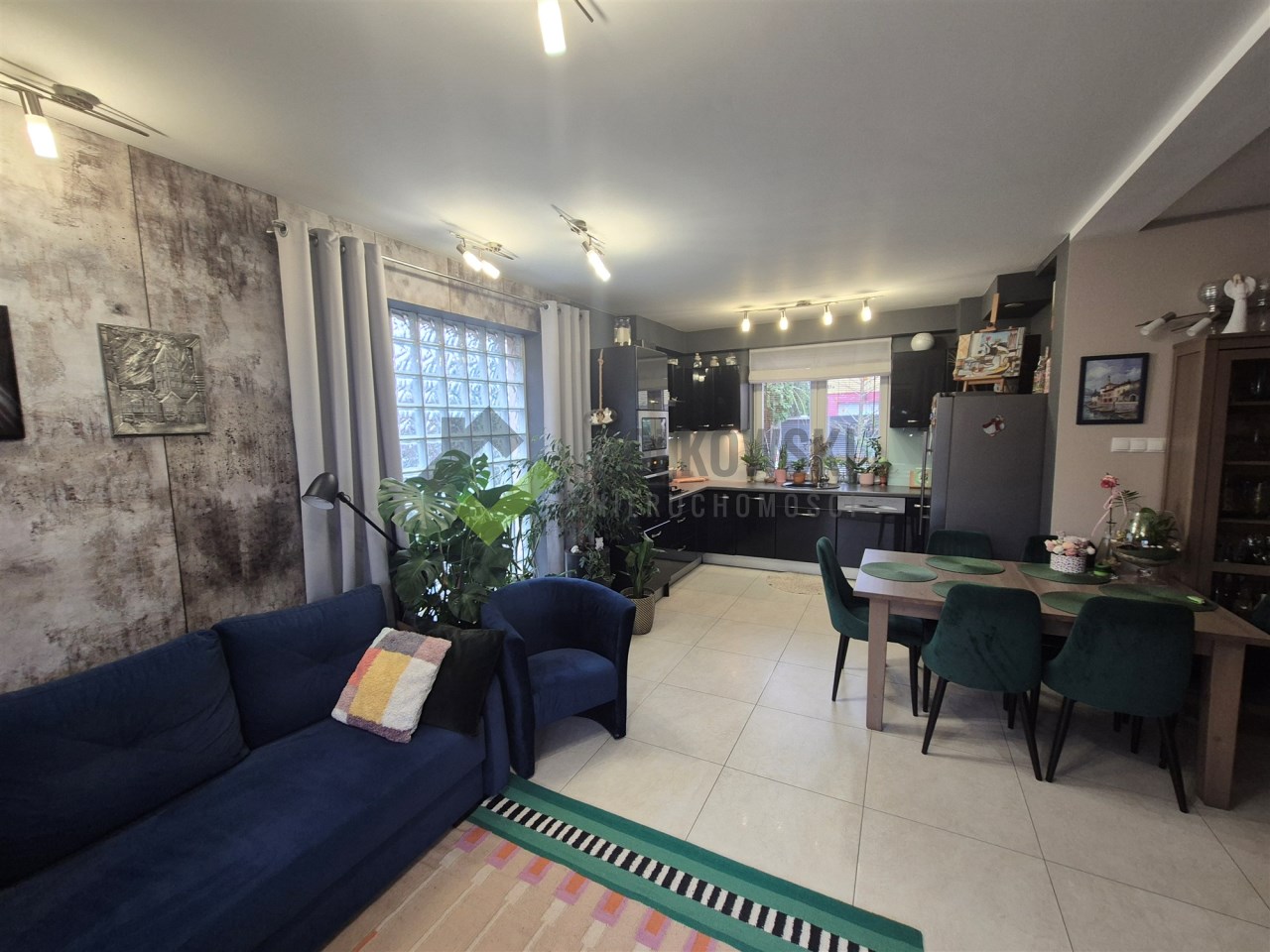 przestronny salon z aneksem kuchennym i jadalnią,