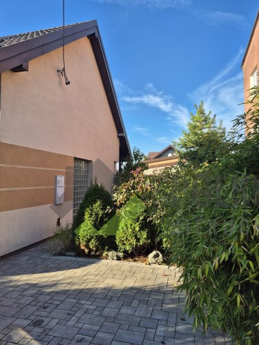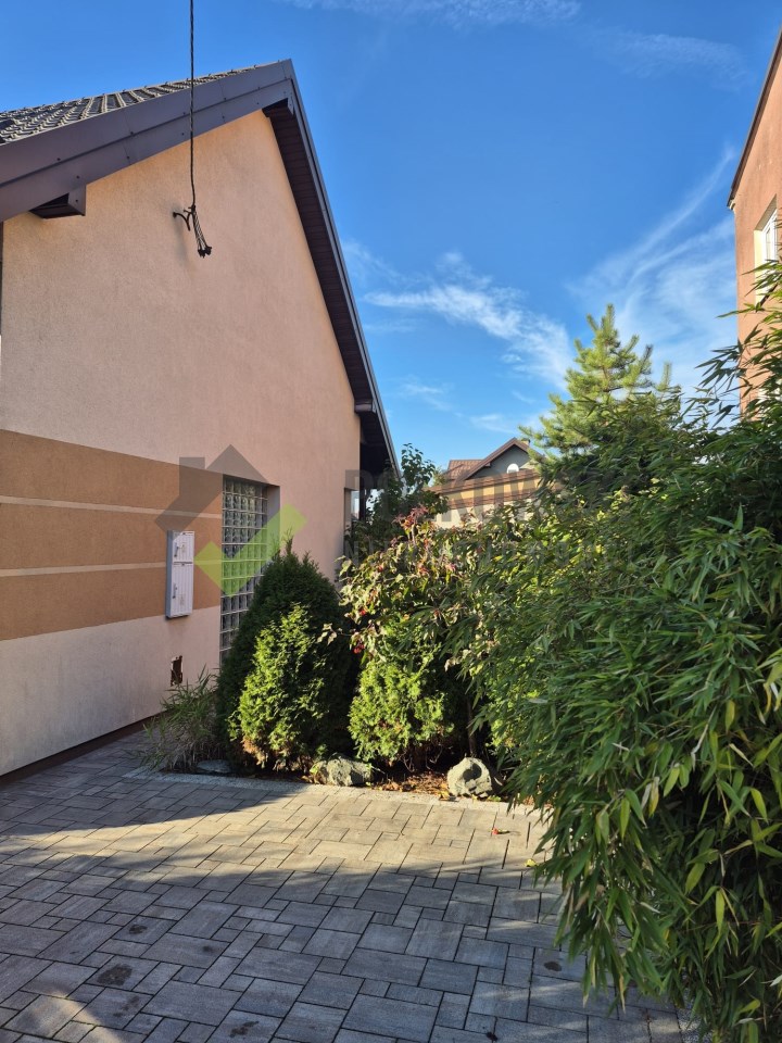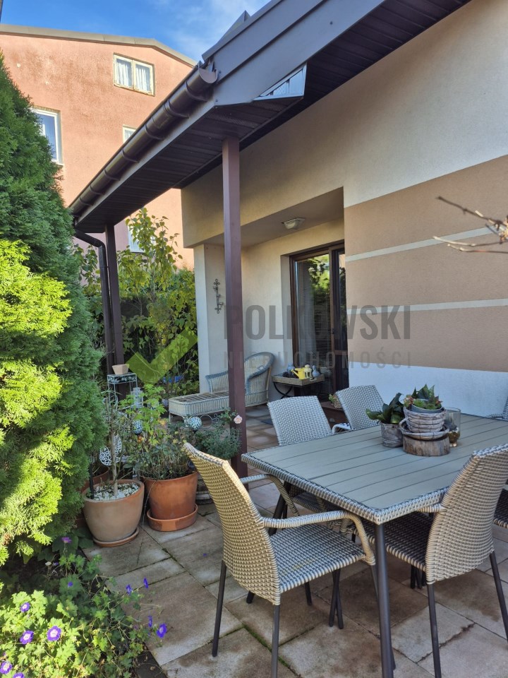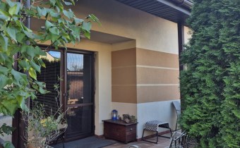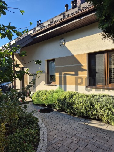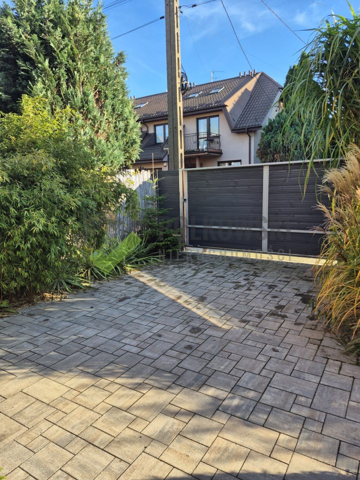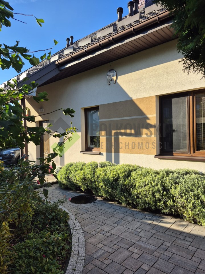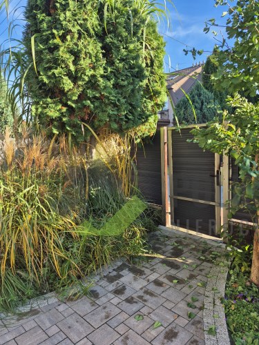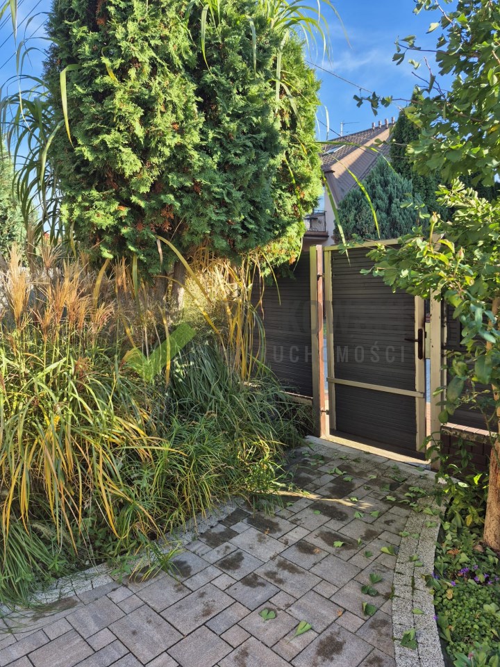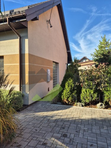 Dom prezentuje się estetycznie i nowocześnie – elewacja w stonowanych kolorach, podkreślająca zadbany charakter nieruchomości. Działka estetycznie zagospodarowana – posadzona bujna roślinnością ozdobną, przygotowane grządki do uprawy warzyw lub ziół, przygotowana instalacja rur do automatycznego nawadniania. W bieżącym roku wykonano nową, wysokiej jakości kostkę brukową wokół domu. Na terenie posesji znajdują się: