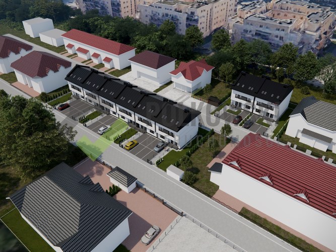 Projekt składa się z sześciu budynków jednorodzinnych dwulokalowych w zabudowie szeregowej.