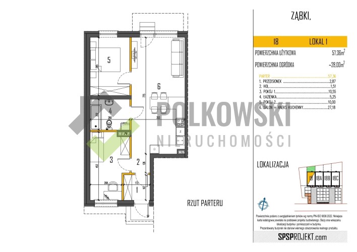 Salon z aneksem kuchennym: 27,18 m² z wyjściem na ogródek