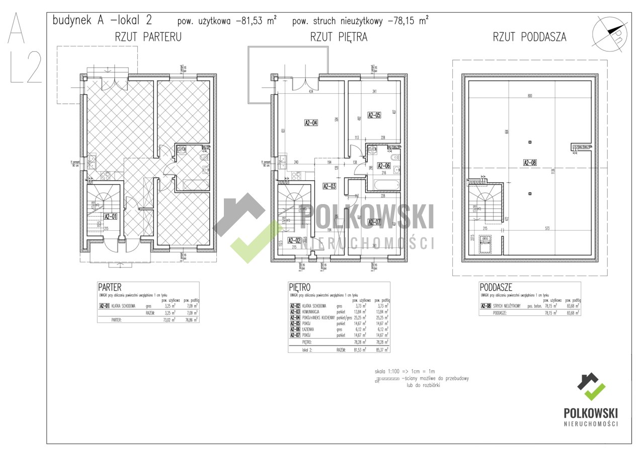 - 10 lokali dwupoziomowych (81,53 m² + nieużytkowe poddasze 78,15 m²) – z balkonem i możliwością adaptacji poddasza na dodatkowe pomieszczenia.