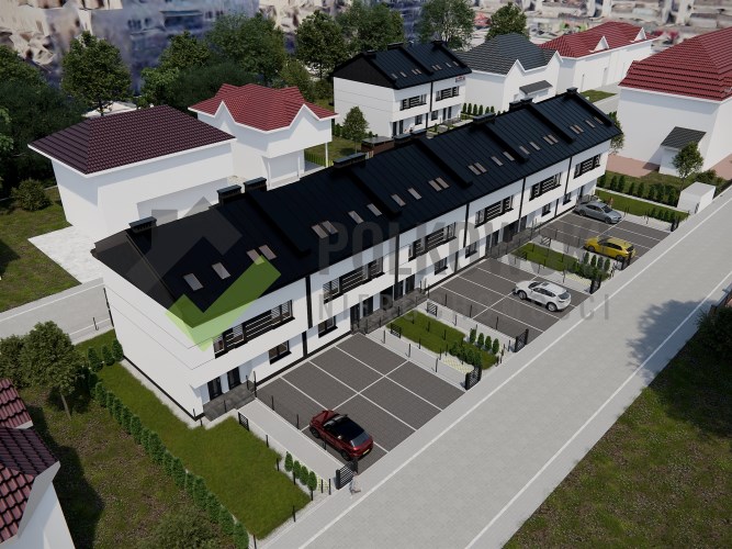Projekt składa się z sześciu budynków jednorodzinnych dwulokalowych w zabudowie szeregowej.