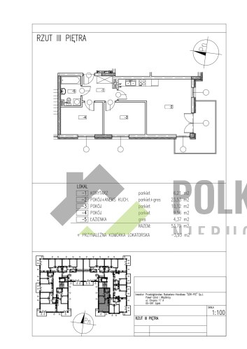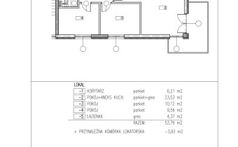 Mieszkanie na sprzedaż – 53,79 m², 3 pokoje, 2016 rok