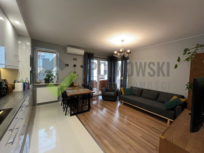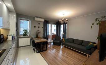 Funkcjonalny układ pomieszczeń zapewnia wygodę i przestrzeń dla rodziny. Salon z aneksem kuchennym jest jasny i ustawny, z bezpośrednim wyjściem na balkon. W części dziennej zamontowana jest klimatyzacja z funkcją chłodzenia i ogrzewania, co zapewnia komfort termiczny o każdej porze roku. Dwie sypialnie oferują wygodną przestrzeń do wypoczynku i pracy.