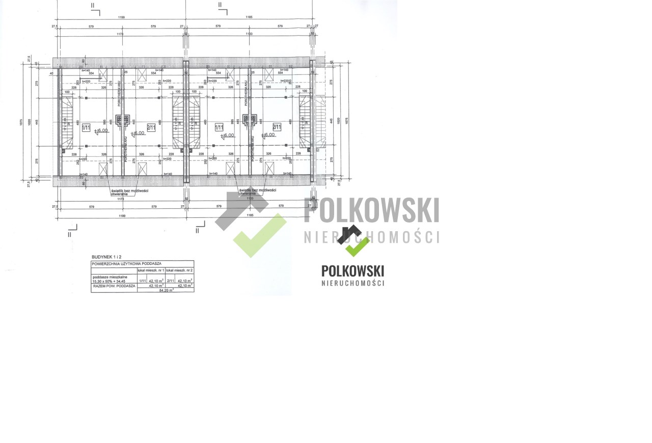 Poddasze: użytkowe o powierzchni 42,10 m2 do własnego zaadoptowania.