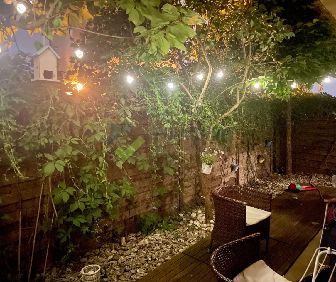 Duże, jasne wnętrze z oknami na południe i wyjściem na prywatny ogródek przez drzwi z salonu.